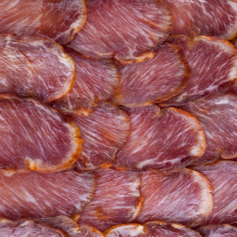 Pieza noble del cerdo de bellota 100% Raza Ibérica, con infiltración regular de grasas.