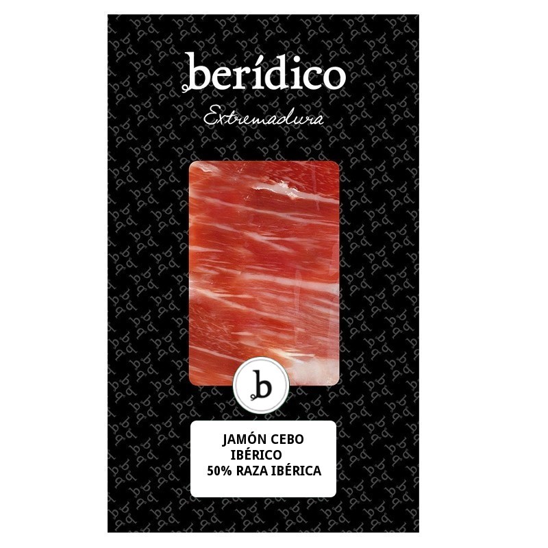 Loncheado tradicional Jamón de Cebo Ibérico 50% Raza Ibérica de Extremadura 100g BERÍDICO