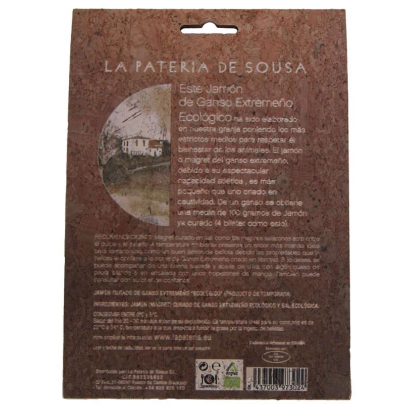 El jamón curado de Ganso Extremeño (magret curado) se obtiene tras un artesanal proceso consistente en el salado, secado y curado de las piezas en bodega, muy similar al del jamón ibérico de bellota. Posteriormente se corta a mano y se envasa al vacío.